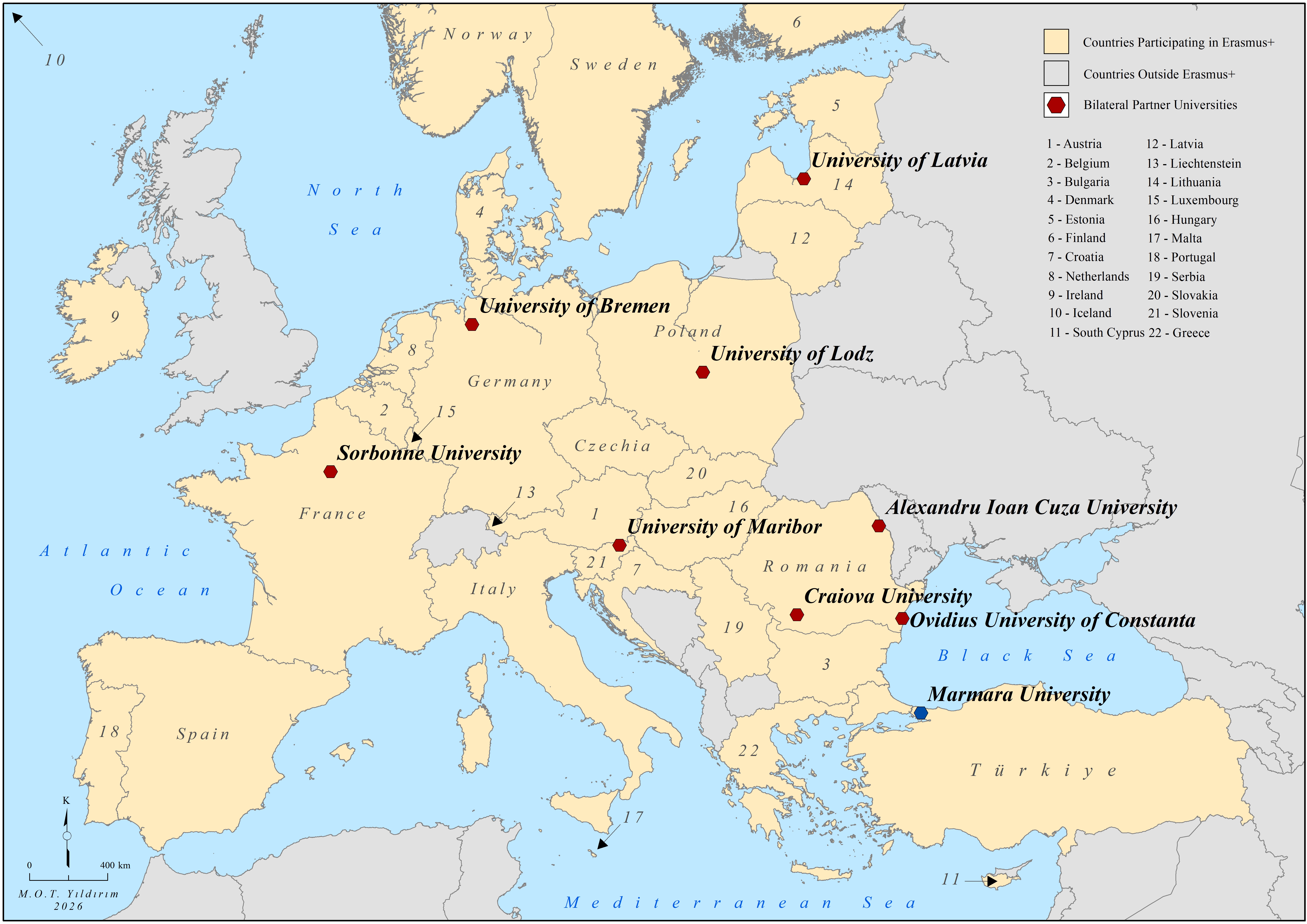 Erasmus+ Programme Department Coordinator Assoc. Prof. Dr. Ahmet Emrah SİYAVUŞ Office: GZFA-423 Ext:3297 emrah.siyavus@marmara.edu.tr Universities with a Bilateral Agreement with our Department Use the links down below in order to learn more about the Erasmus+ programme Marmara University Turkish National Agency European Comission This page updated by Coğrafya on 15.01.2026 11:39:21